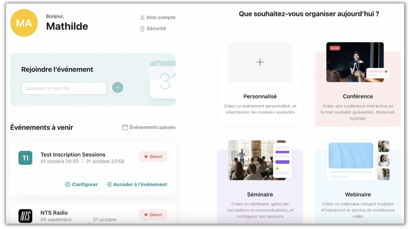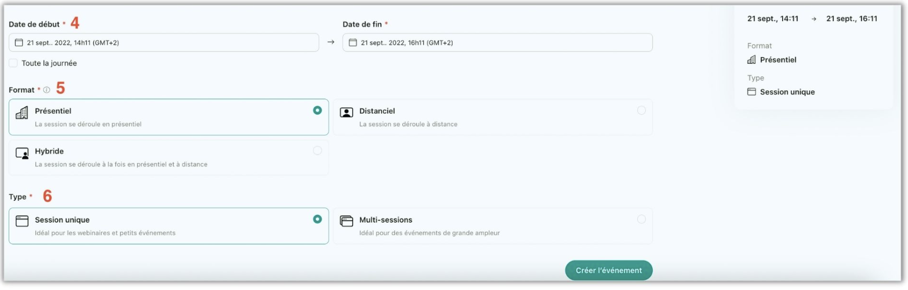 Type : session unique = un événement sur votre page // multi-sessions = plusieurs sessions sur votre événement ( une session plénière avec des sous-groupes)