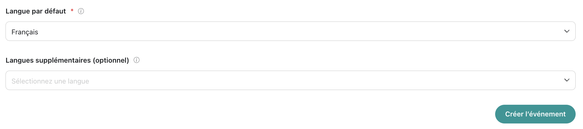 Langue optionnelle = Permet de gérer les traductions dans ces langues. L'interface sera automatiquement affichée dans la langue correspondant au profil de l'utilisateur