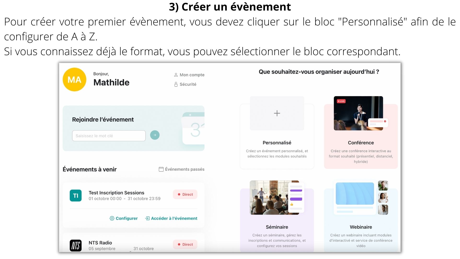 Étapes de création d’un évènement