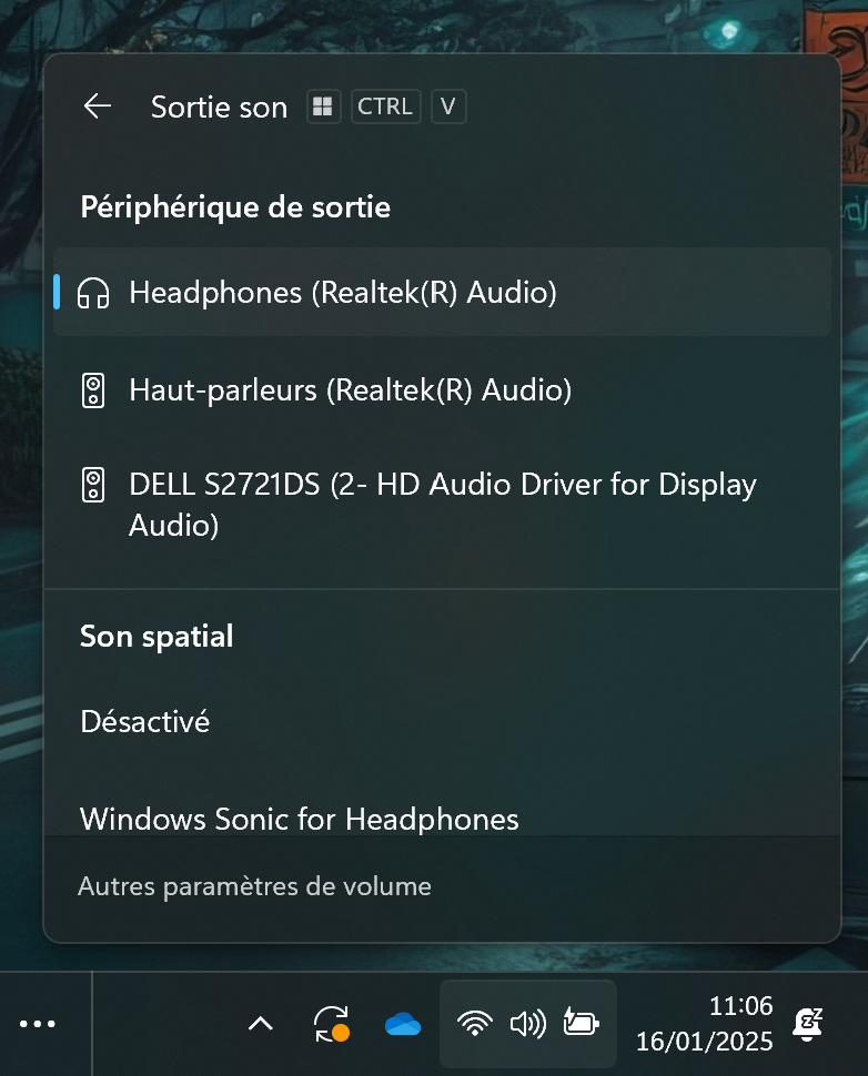 Le son est sur la bonne sortie dans les paramètres de votre système d’exploitation.